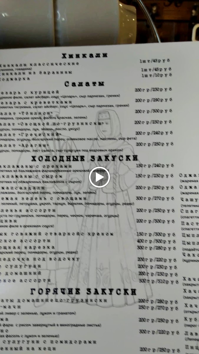 Khinkal'naya Gruzinskaya Kukhnya Menu